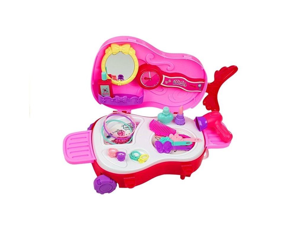 Kosmetická sada je skvělá hračka pro všechny dívky, které se rády oblékají před zrcadlem. Sada skládající se z kufru zdobeného zrcadlem a mnoha plastových doplňků umožní dítěti dlouhou zábavu. Možnost zahrát si na kosmetičku jistě potěší každou holčičku. Barevný toaletní stolek má kolečka a madlo, což dítěti výrazně usnadňuje přesun z kufříku ve tvaru houslí.