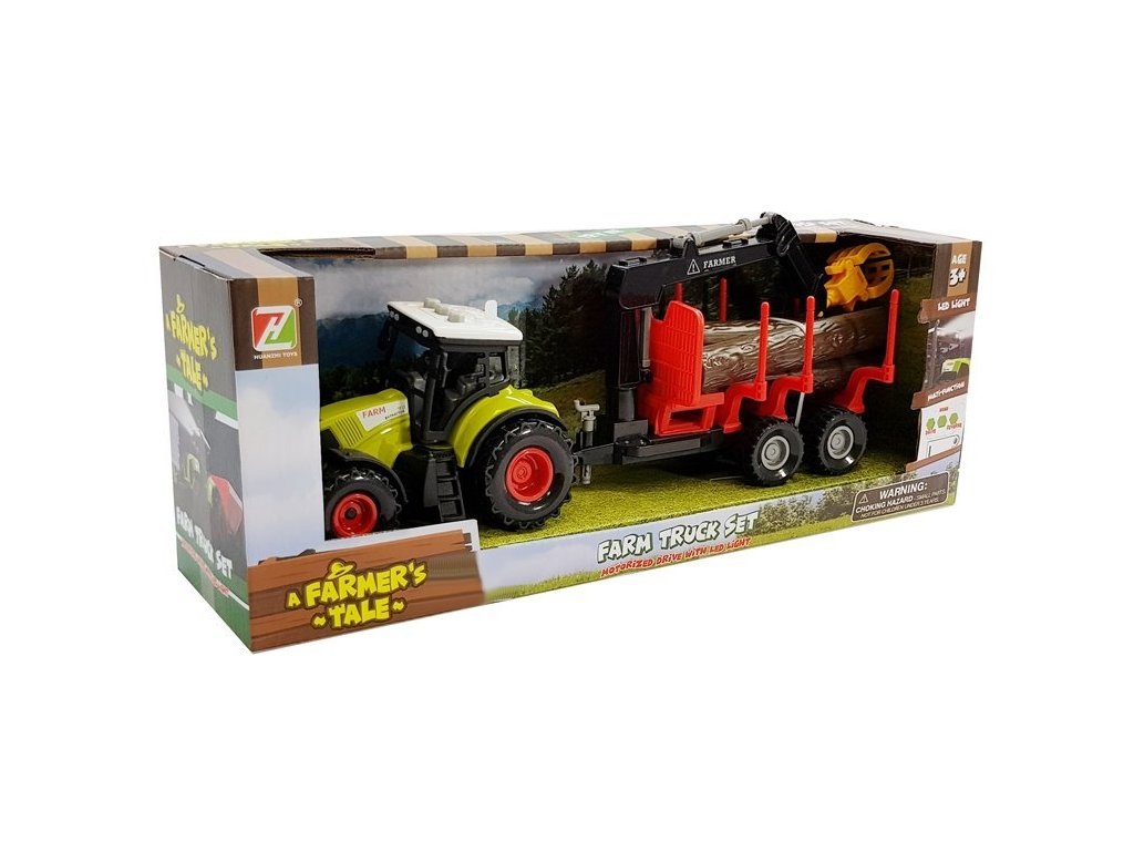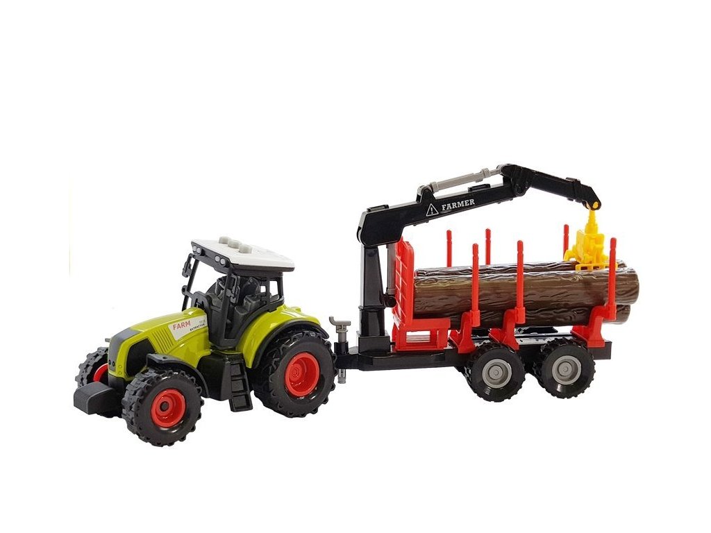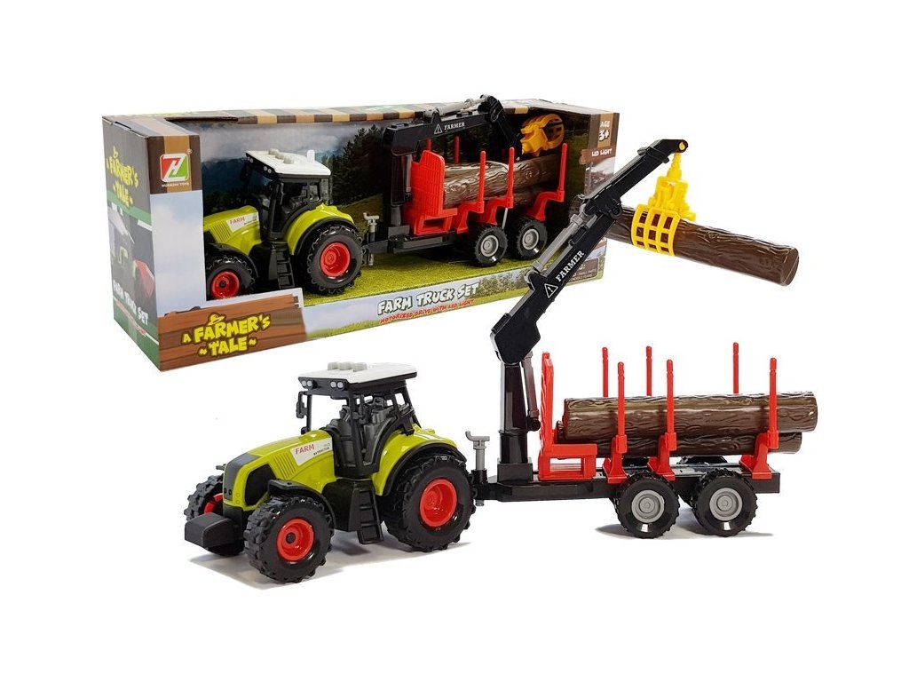 Traktor s vlečkou na dřevo a pohyblivým ramenem. Traktor nadchne všechny fanoušky zemědělství a lesnictví. Traktor je precizně vyrobený, je jedinečnou hračkou.