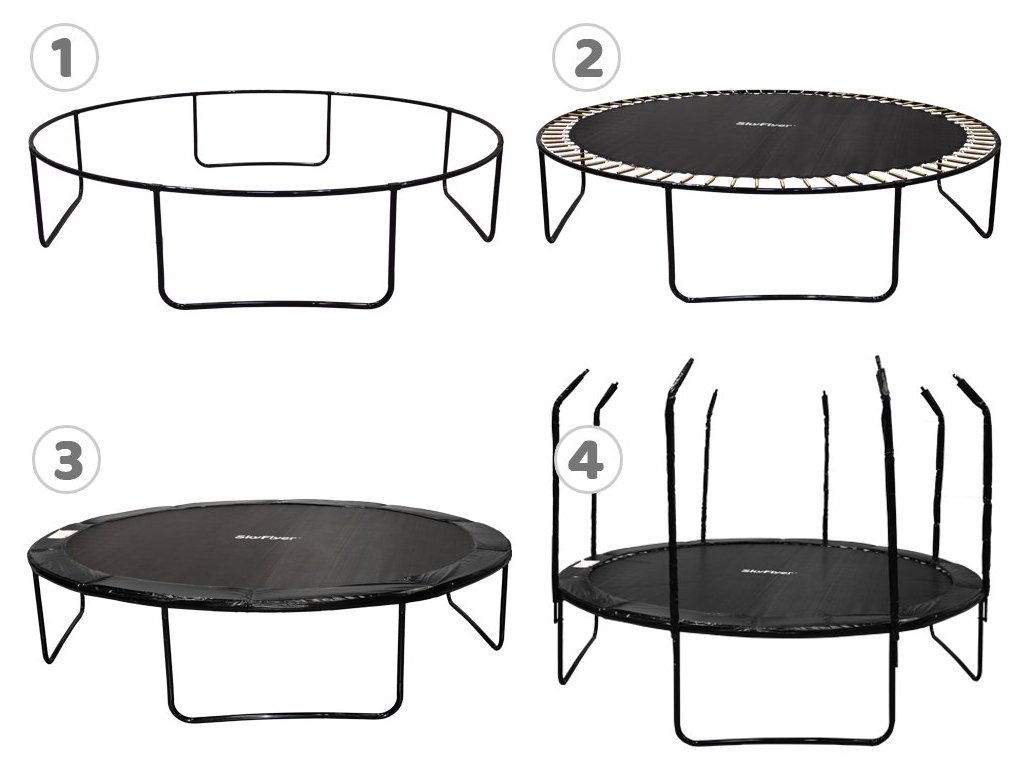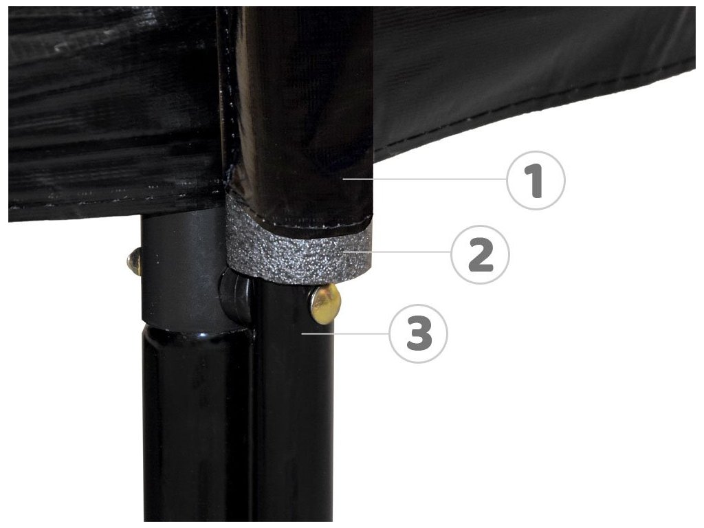 - Trubky jsou připevněny k nohám trampolíny silnými šrouby