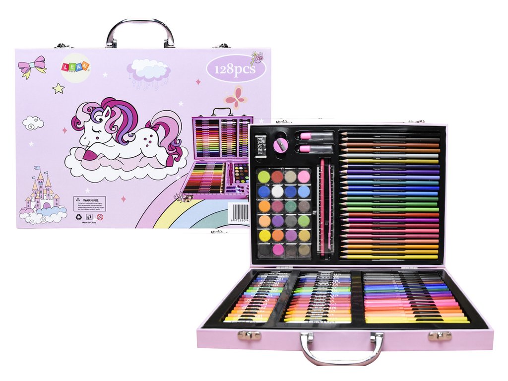 Umělecká sada v kufříku s jednorožcem Růžová 128 KS