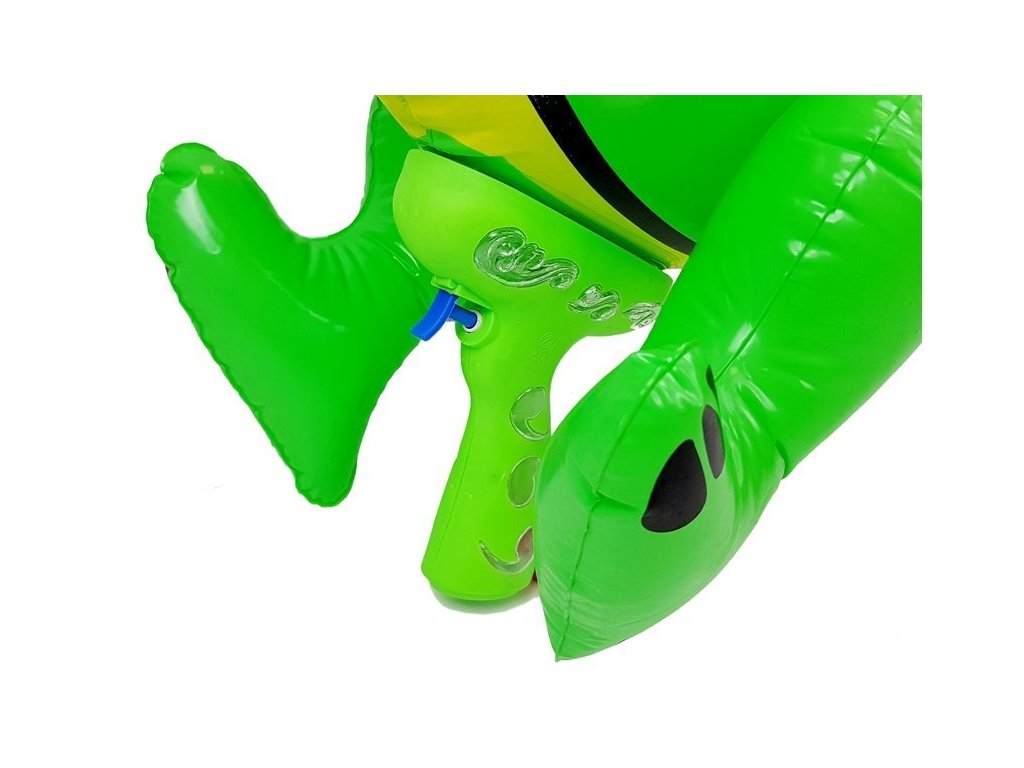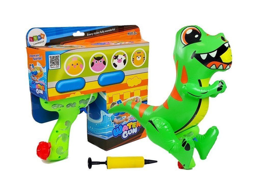 V sadě najdete také pumpu, kterou potřebujete k nafouknutí balónku dinosaura. Poté nalijte vodu do pistole a začněte hrát. Když stisknete spoušť, voda pumpuje nahoru a ven z jeho úst.