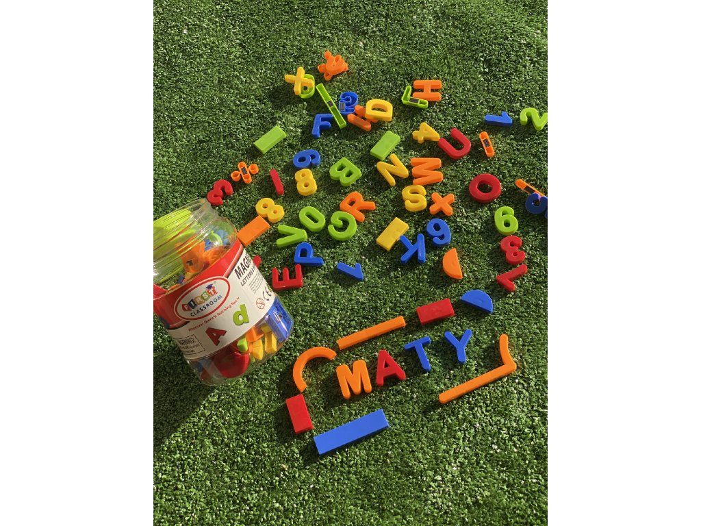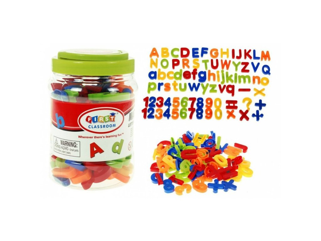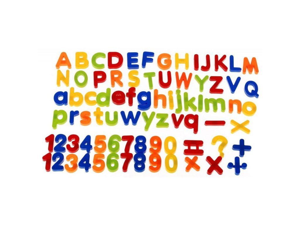 Písmenka, znaménka a číslice, která drží na magnetické tabuli. Děti se naučí abecedu a základni počty. Díky barevnému zpracování bude výuka efektivnější a především pro děti o něco zábavnější.