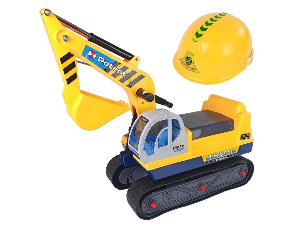 Velký pásový bagr s helmou žlutý