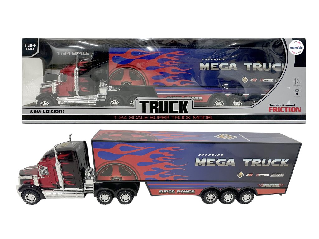 Velký kontejnerový kamion s výrazným plamenovým designem přinese malým řidičům pořádnou nálož akce. Frikční pohon umožní odrazem a puštěním rozjet truck bez baterií. Po zmáčknutí tlačítka se aktivují světelné efekty i hudba, díky kterým působí ještě živěji. Ideální pro děti, které milují velká auta, rychlé výjezdy a pořádné show. Vhodný na hraní doma, do herny, na autodráhu nebo do sbírky modelů. Hračja he vhodný pro děti od 3 let.
