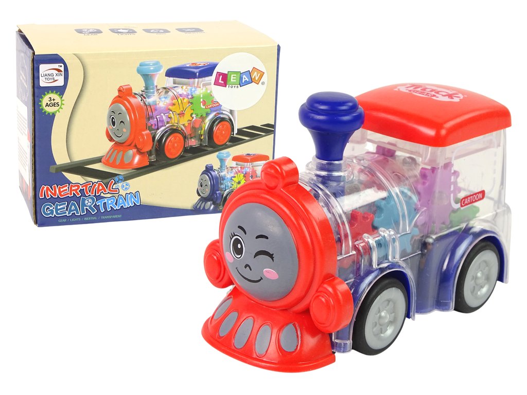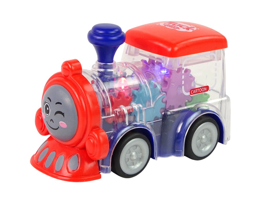 Veselý vláček má průhlednou konstrukci, díky kterému může batole při hře poznat fungování vláčku. Uvnitř jsou ozubená kola, která se při pohybu otáčejí. To je doprovázeno barevnými LED diodami.