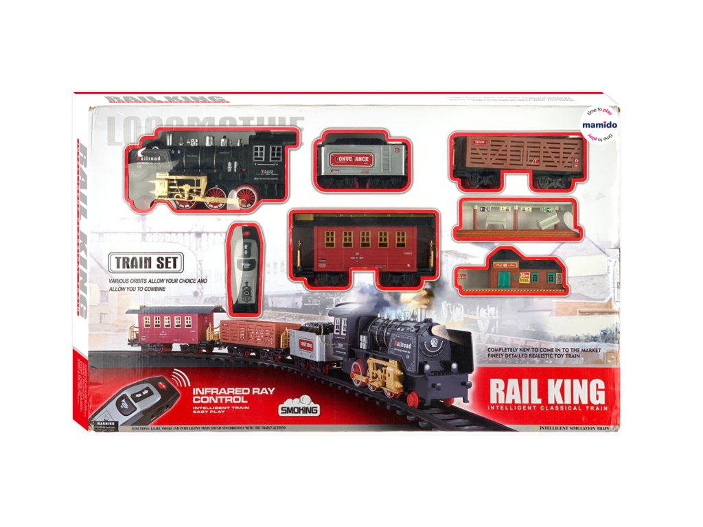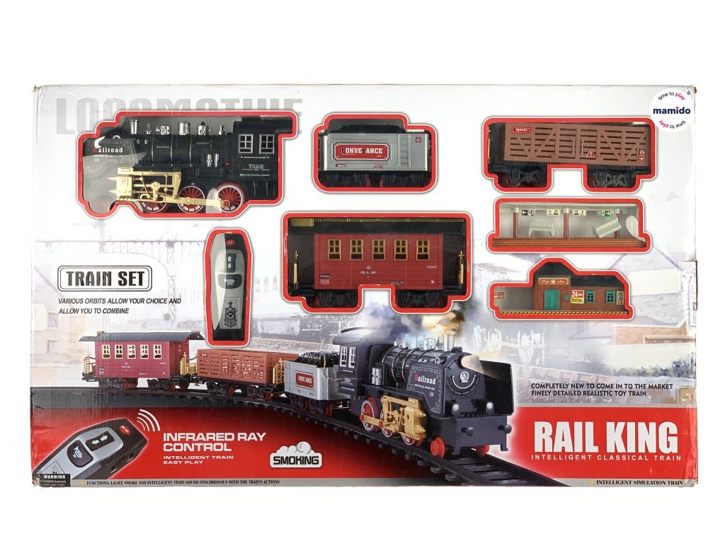 Obrovská a úžasná vláčkodráhá s lokomotivou, vagonky a kolejemi. Lokomotiva je na tužkové baterie. Mraky kouře a zářící světla činí vlak atraktivní pro malé i velké děti. Tato sada vydává realistické zvuky, zvuky zrychlení, zpomalení a trumpety.