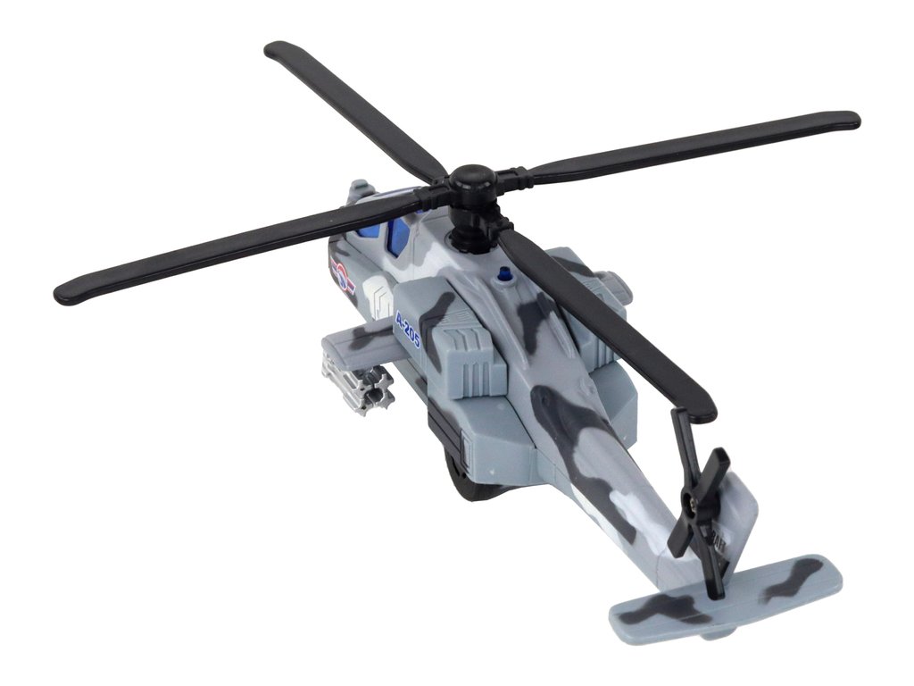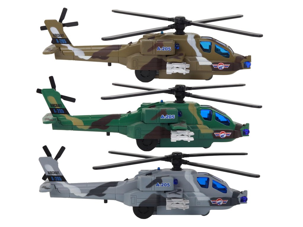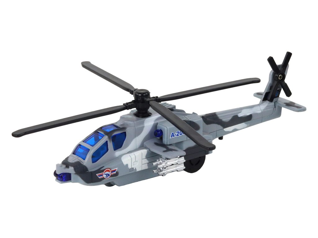 Každý vrtulník má vestavěný pohon, světelné a zvukové efekty. Po natažení se spustí pohonný mechanismus, což způsobí, že hračka začne pohybovat samostatně. Navíc se rotor začne otáčet, což přidává další realismus a zábavu.