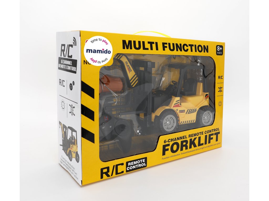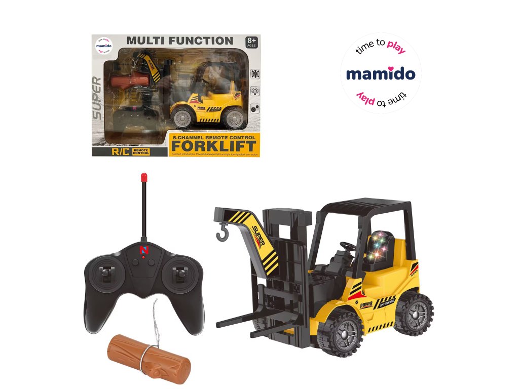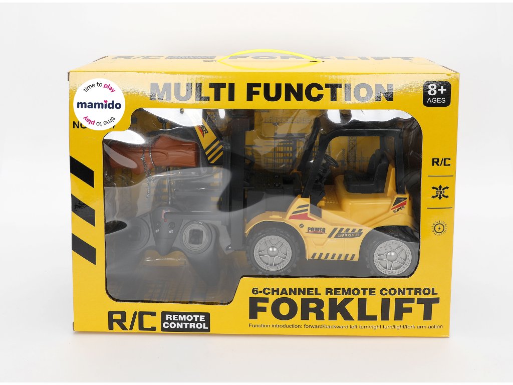 Vysokozdvižný vozík na dálkoové ovládání s realistickým ovládáním a funkčním zdvihem vidlic umožňuje jízdu vpřed / vzad, zatáčení vlevo i vpravo a zvedání či spouštění nákladu. Součástí je také hákový nástavec a náklad (kmen), díky které lze trénovat nakládání ještě zábavněji. Model je vybaven světelnými efekty a dobíjecí baterií s USB nabíjecím kabelem. Ovládání je jednoduché a hračka je vhodná pro děti od 8 let.