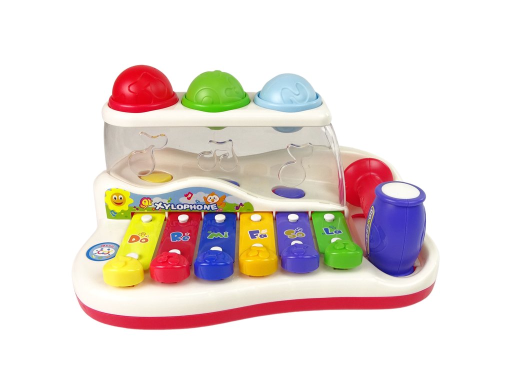 Cimbál má 6 pestrobarevných tlačítek, která dítě mačká prstem nebo bije paličkou, díky čemuž nástroj vydává příjemný zvuk stimulující sluch. Na xylofonových deskách jsou písmena a poté čísla, které lze po zapamatování použít k vytvoření vlastních hudebních skladeb, díky nimž bude vaše dítě kreativnější.