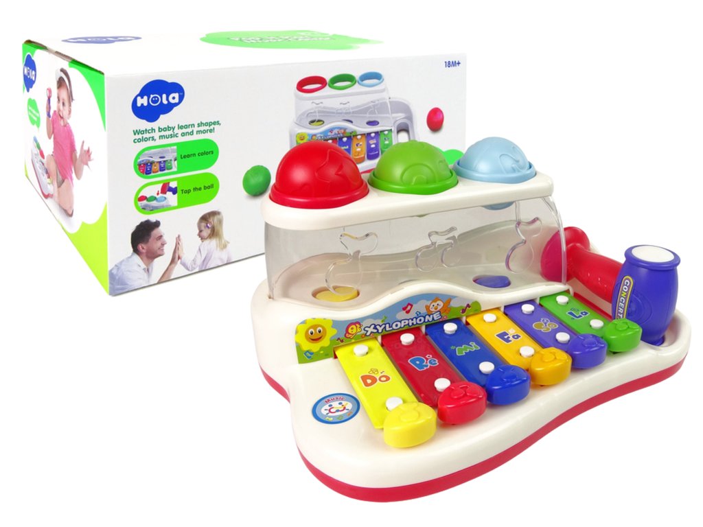 Živé barvy a textura 3 kuliček stimulují hmat a zrak, což dává radost z výsledků nové hry. Kuličky se tlučou kladivem, aby se uvolnily zvuky z nástroje. Jakmile jsou umístěny uvnitř, tryskají ze strany a podporují další hru.
