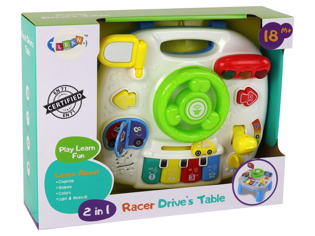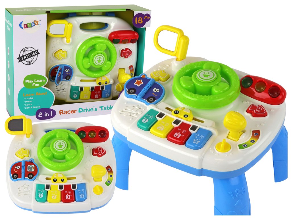 Prozkoumejte tento interaktivní vzdělávací stoleček 2v1 navržený s ohledem na komplexní rozvoj malých objevitelů. Středem tabule je interaktivní volant s realistickým klaksonem, směrovými světly, veselým tikáním do obou stran a aktivní dopravní signalizací. To není pouze o zábavě, ale také o učení pravidel silničního provozu a pohybové koordinaci.