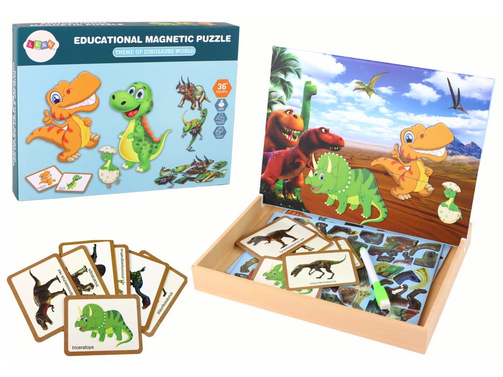 Magnetické puzzle s motivem dinosaurů je vzrušující cestou do pravěkého světa, která rozvíjí dětskou představivost a kognitivní schopnosti. Sada obsahuje různé hádanky, které vám umožní objevit různé druhy dinosaurů. Díky přiložené podpůrné kartě se děti učí, jak daný dinosaurus vypadá, což rozvíjí jejich logické myšlení a schopnosti řešit problémy.