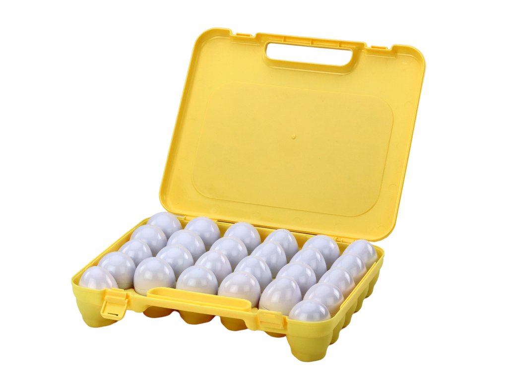 Žlutý kufřík, ve kterém se vajíčka nacházejí, zajišťuje snadné skladování a přepravu hračky, díky čemuž si vaše dítě může užívat učení a zábavu kdekoliv se nachází. Dejte svému malému objeviteli šanci na rozvoj a radost z učení s naší sadou třídících vajíček – to je víc než hračka, to je vzdělávací zážitek, který potěší jak dítě, tak jeho pečovatele.