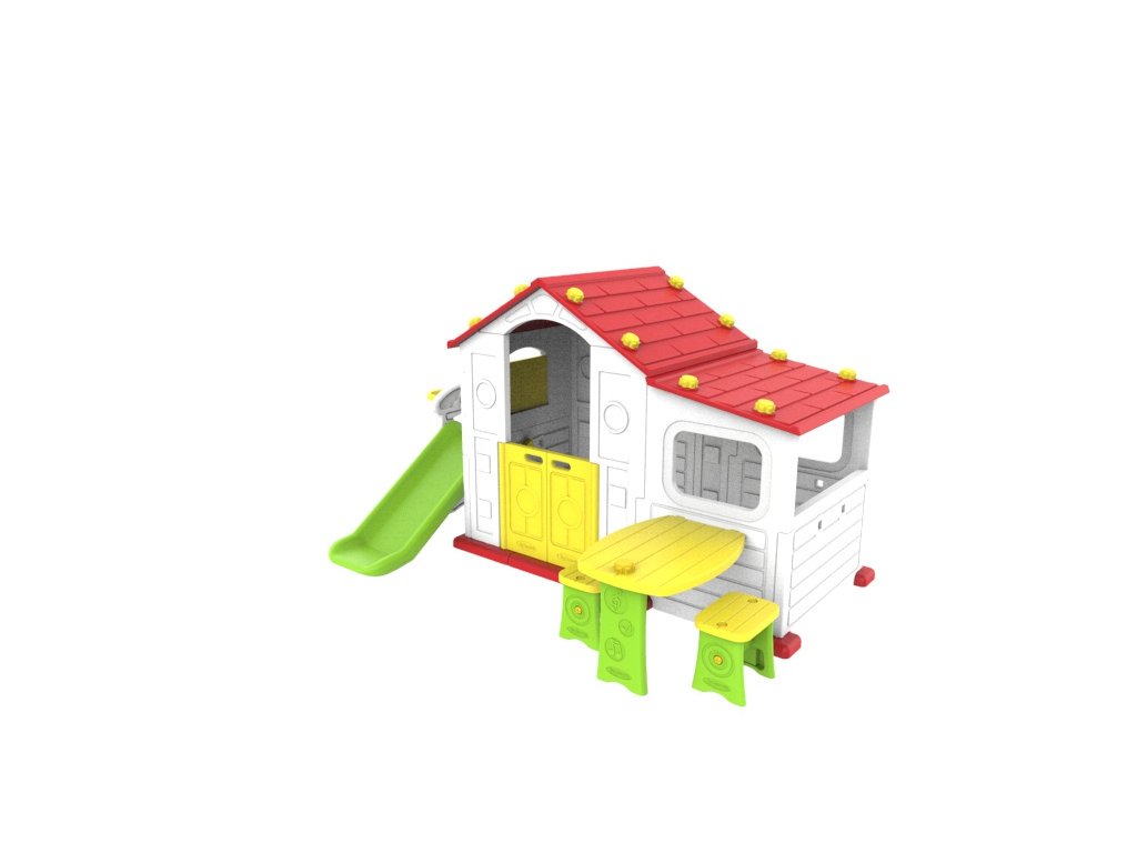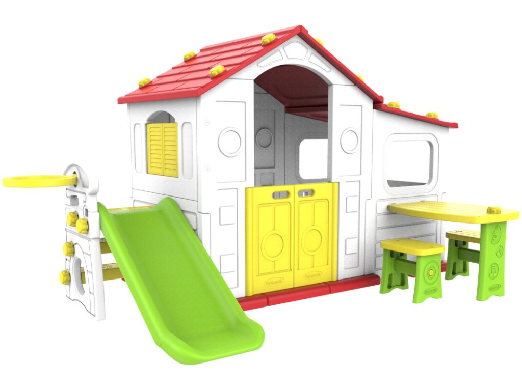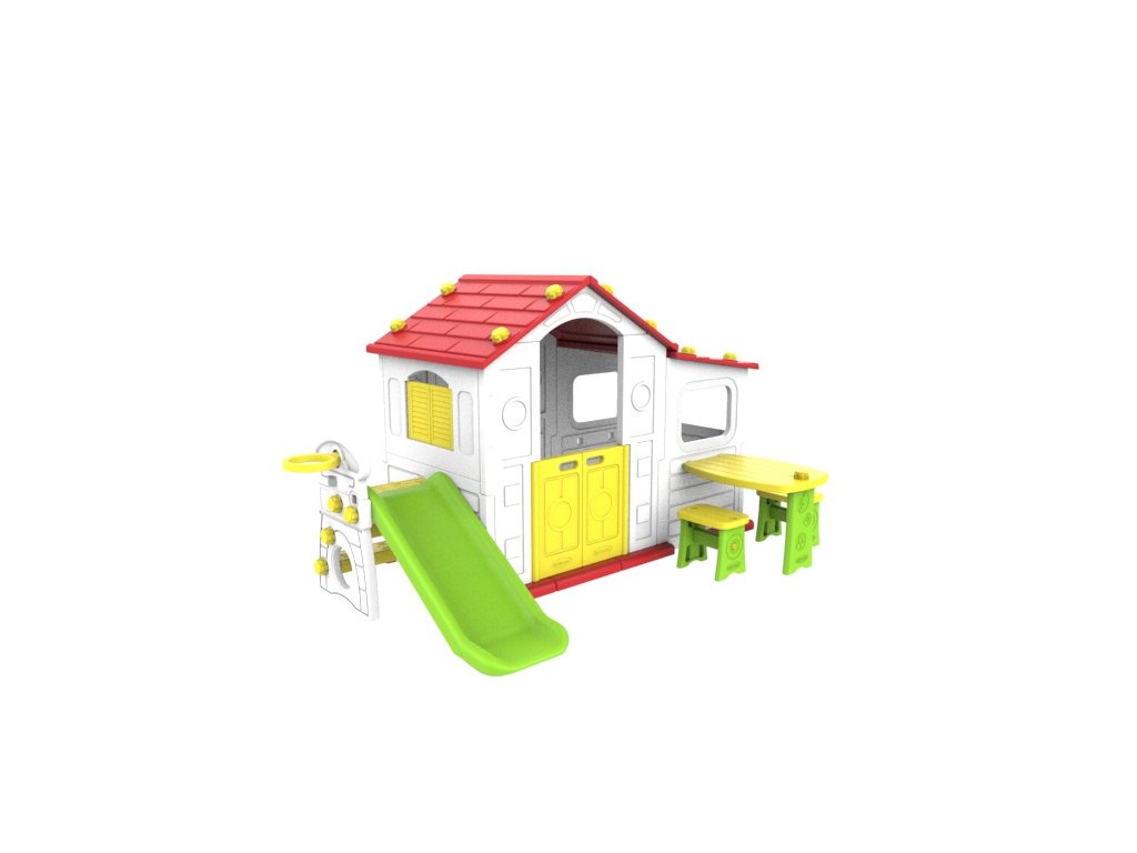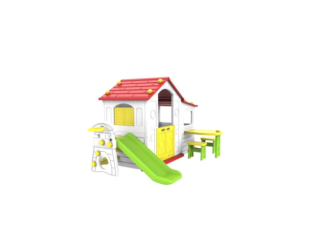 Zahradní domeček se skluzavkou a stolečkem 4v1