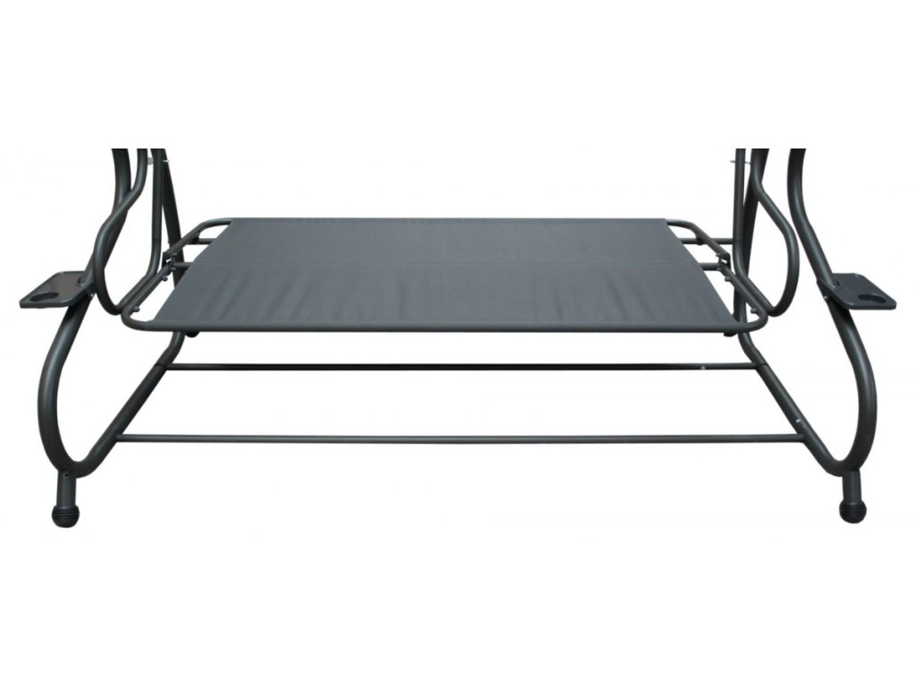 Zahradní houpačka se sklopným sedákem a regulovatelnou stříškou.