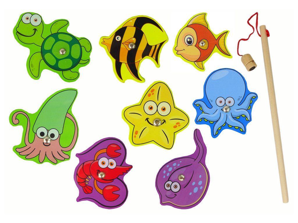 Set di pesca in legno di animali marini