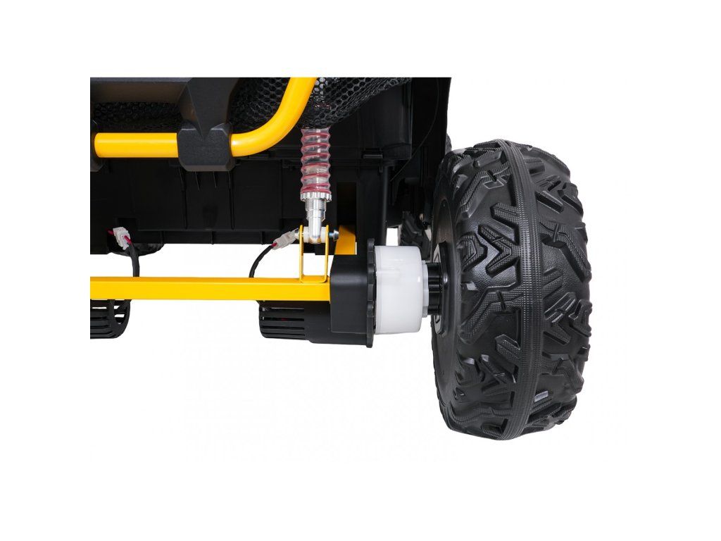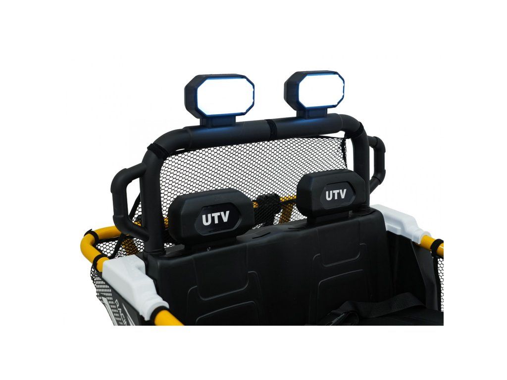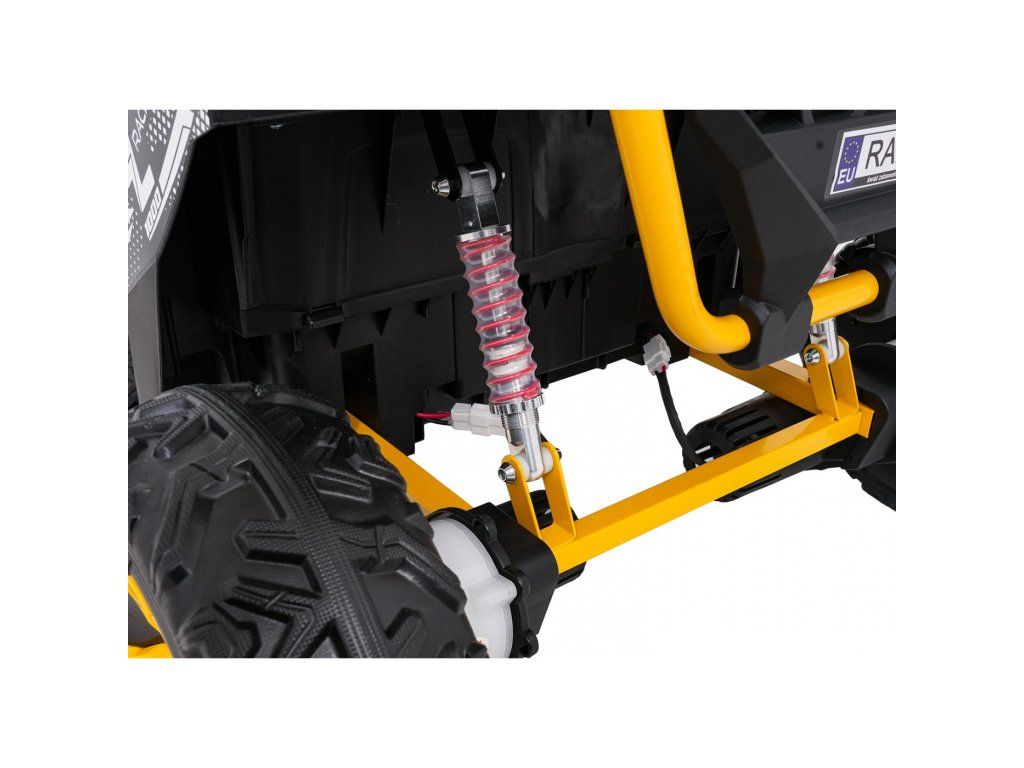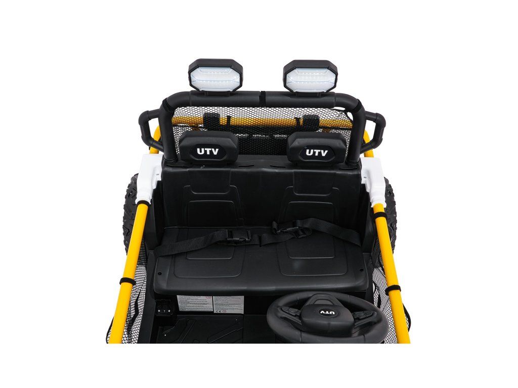 Il potente buggy elettrico UTV SPEED per bambini è la scelta ideale per i piccoli conducenti che vogliono vivere un'autentica esperienza di guida in stile fuoristrada. Grazie a due potenti motori, a una grande batteria da 24 V e a una sospensione, affronta comodamente diverse superfici. La configurazione a due posti consente di viaggiare in due, mentre i genitori hanno il pieno controllo grazie al telecomando. L'ampia dotazione, inclusi fari a LED{6}, pannello audio e dispositivi di sicurezza, garantisce divertimento e sicurezza.