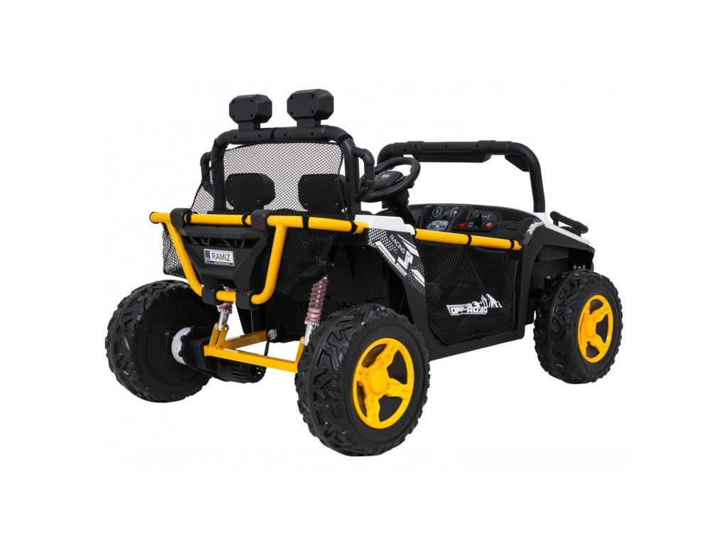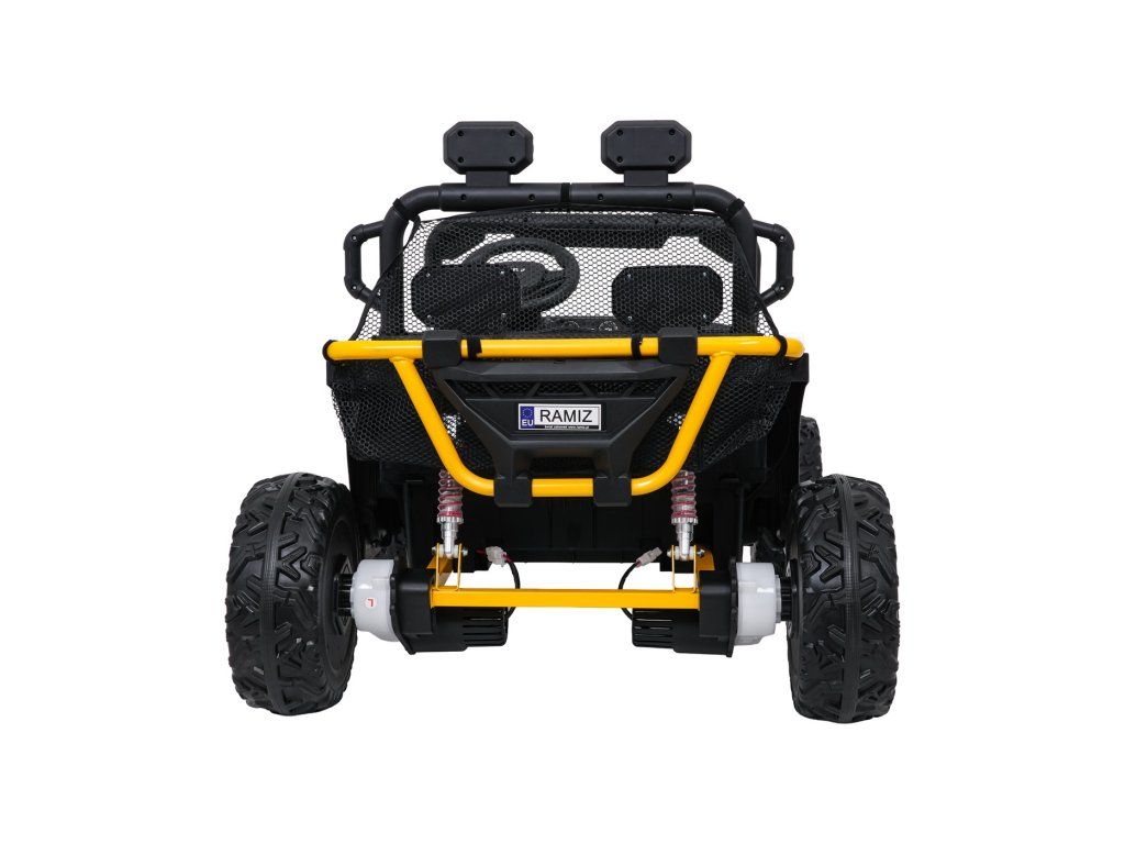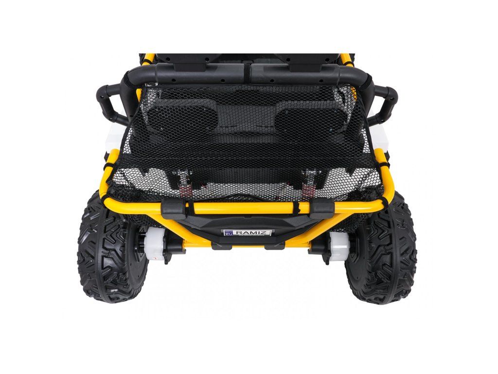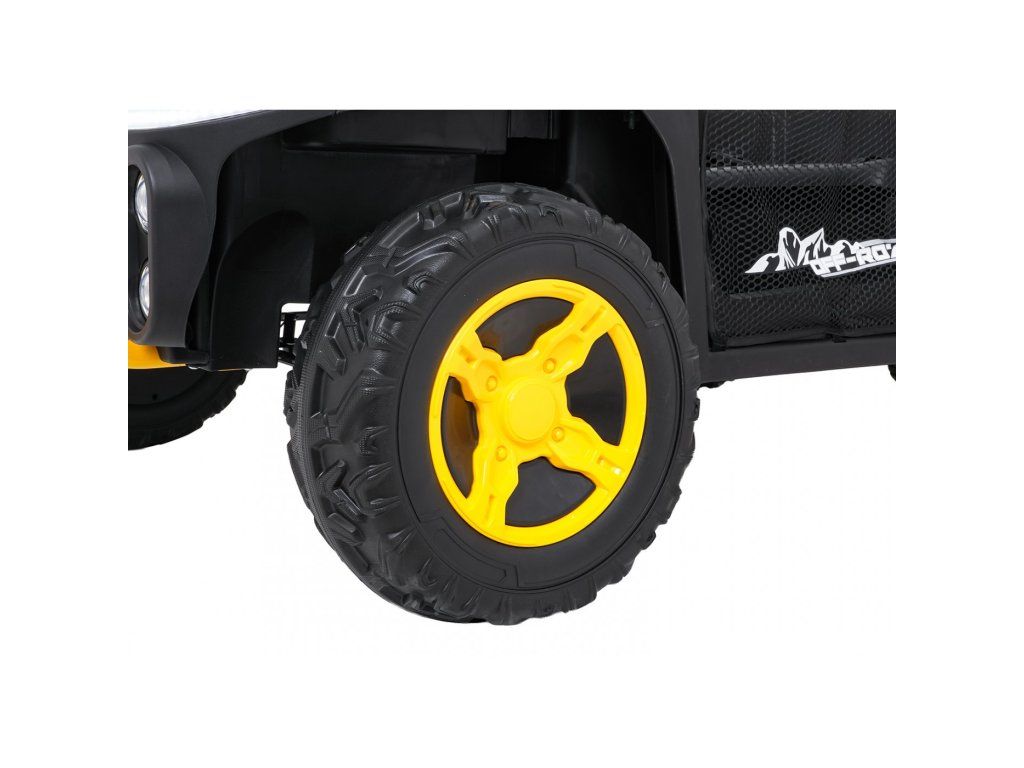 Il potente buggy elettrico UTV SPEED per bambini è la scelta ideale per i piccoli conducenti che vogliono vivere un'autentica esperienza di guida in stile fuoristrada. Grazie a due potenti motori, a una grande batteria da 24 V e a una sospensione, affronta comodamente diverse superfici. La configurazione a due posti consente di viaggiare in due, mentre i genitori hanno il pieno controllo grazie al telecomando. L'ampia dotazione, inclusi fari a LED{6}, pannello audio e dispositivi di sicurezza, garantisce divertimento e sicurezza.