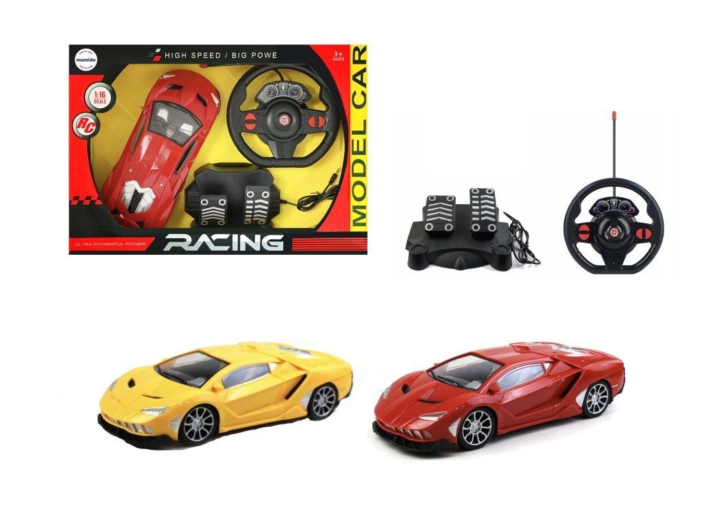 Auto radiocomandato 1:16 modello da corsa con volante e pedali rosso