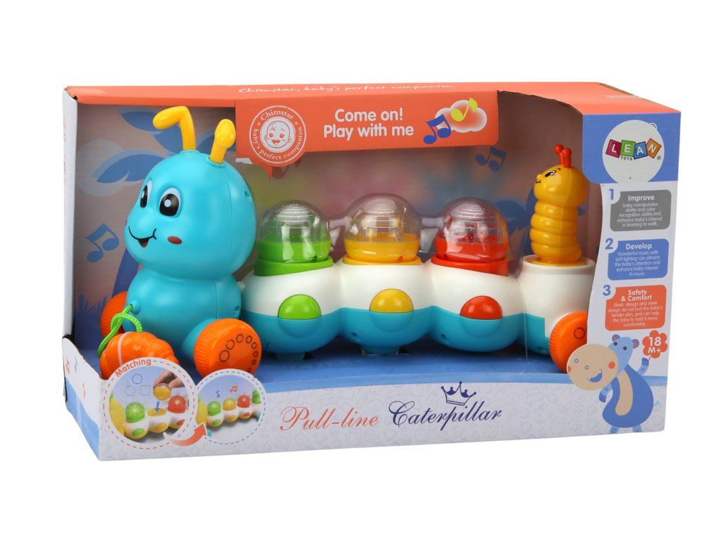 Un altro elemento di gioco sono tre palline di plastica posizionate sulla schiena del bruco. Il bambino può rimuoverle e farle rotolare sul pavimento, il che non solo porta gioia, ma sviluppa anche la coordinazione occhio-mano e la motricità fine.