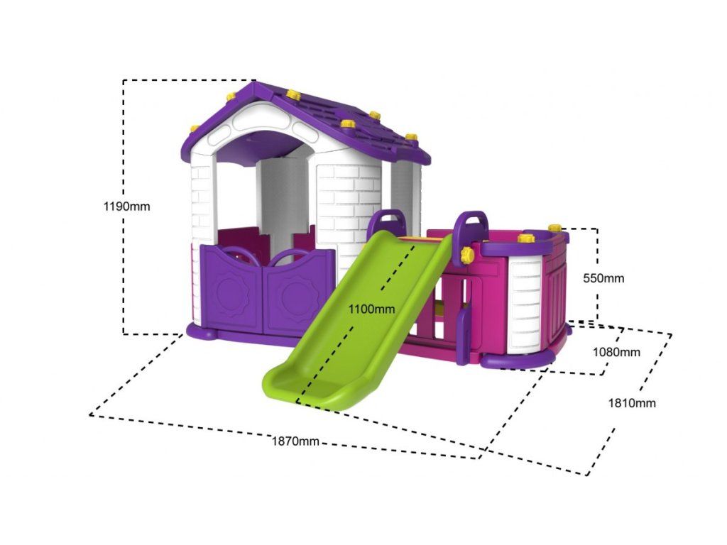 Favoloso casetta da giardino con ampio interno e scivolo. La casetta ha porte apribili e una struttura resistente. Lo scivolo può essere fissato su qualsiasi lato della casetta e dell'entrata. Il giocattolo è realizzato con materiali di alta qualità e tutte le pareti e i componenti sono realizzati in plastica a doppio strato. La casetta da giardino è resistente alle intemperie e ai raggi UV. Adatta per la fascia di età da 1 anno. Il prodotto ha il certificato di sicurezza europeo CE. Made in Korea.
