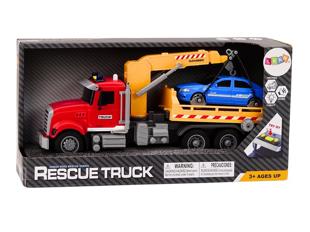 Camion dei pompieri rosso con luci, suoni e gru