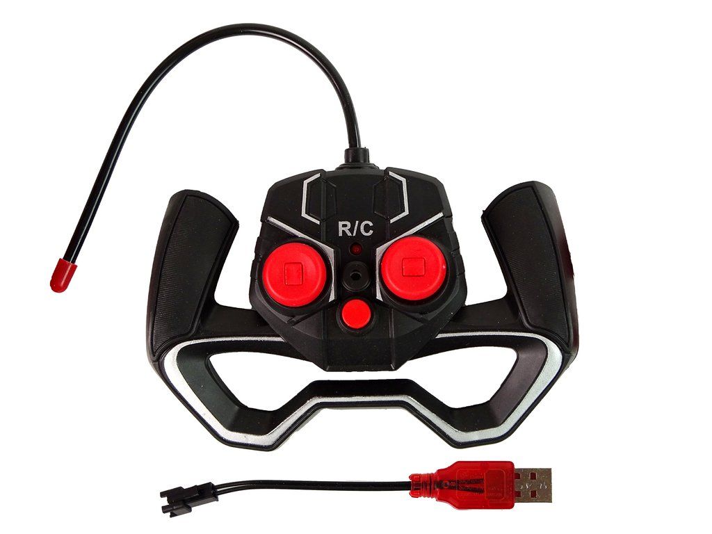 Auto fuoristrada è dotato di pneumatici in gomma e grazie agli ammortizzatori supera facilmente gli ostacoli. L'aspetto realistico dell'auto piacerà a ogni bambino. Il telecomando con pulsanti rossi è leggero, pratico e ideale per le mani piccole.