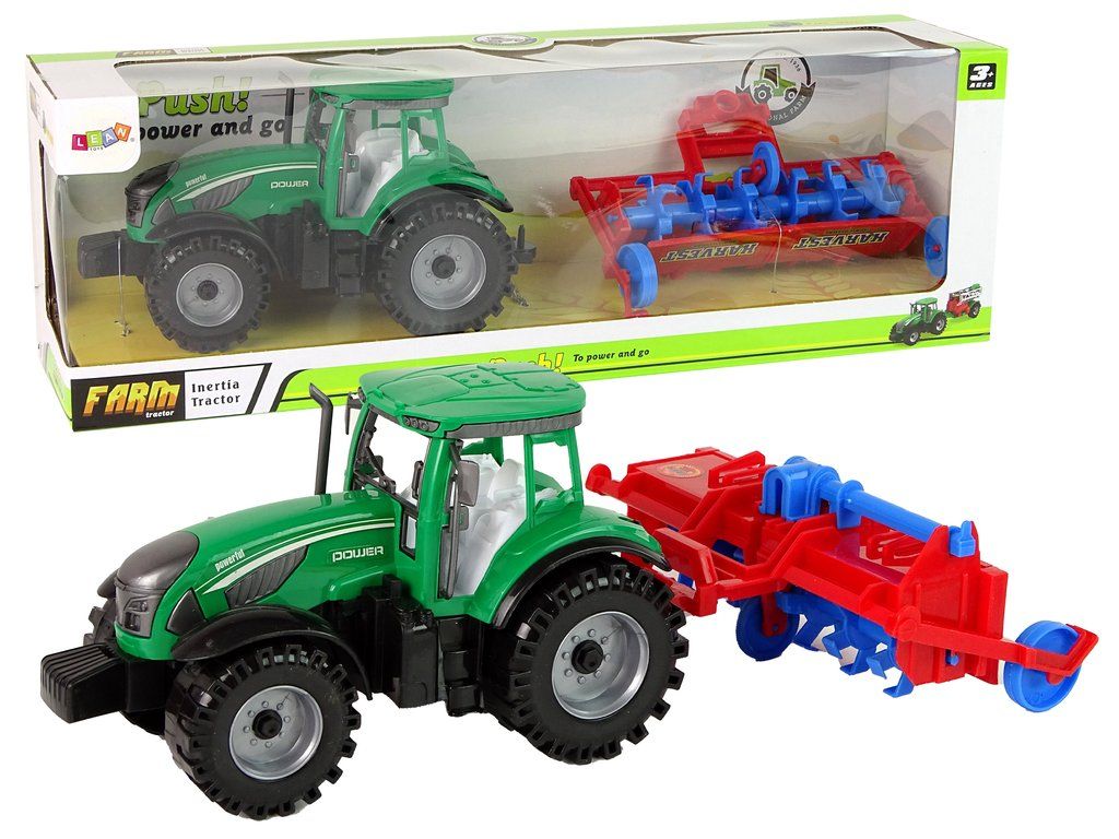 Trattore con aratro è un giocattolo ideale per l'uso a casa, in giardino o nella sabbiera. Permette a tuo figlio di godere delle attività all'aperto e allo stesso tempo sviluppare la sua immaginazione. Il gioco diventa ancora più realistico grazie al tetto rimovibile del trattore. I bambini possono portare in giro le loro bambole o figurine.