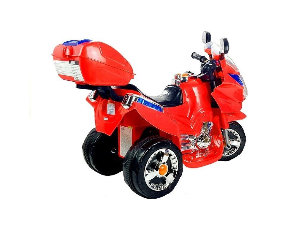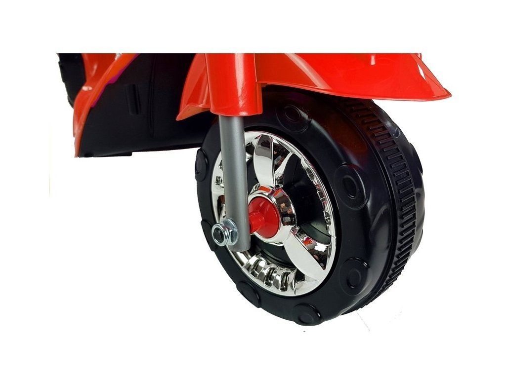 Červená elektrická motorka je vybavená baterií 6V4,5Ah a silným motorem 18 W. Duo těchto komponentů vám umožní dosáhnout rychlosti kolem 4 km / h, což přinese každému dítěti skvělou zábavu. A co víc: tento model má dvě rychlostní stupně - přední a zadní, což výrazně usnadňuje zábavu. Dalšími prvky, které jsou hlavními výhodami této motorky jsou: transparentní kapota, boční zrcátka a LED osvětlení, které zvyšují viditelnost dítěte na silnici. Na zadní straně je otevírací kufr, ve kterém malý řidič může držet své poklady. Nezanedbatelným prvkem je houkačka a hudební tlačítka v oblasti volantu.