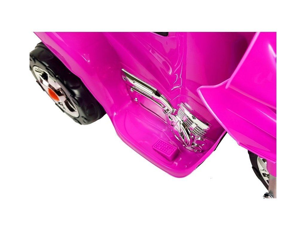 Růžová elektrická motorka určitě přinese úsměv na tváři každého dítěte, zpestří procházky a čas strávený venku. Hra s touto motorkou bude mít pozitivní vliv na vývoj dítěte, na učení nezávislého odhadu rychlosti a vzdálenosti a na zlepšení motorických dovedností, což je velmi důležité na začátku života. Konstrukce s třemi koly je také velmi důležitým řešením, které usnadní dětem potíže s udržováním rovnováhy při řízení.