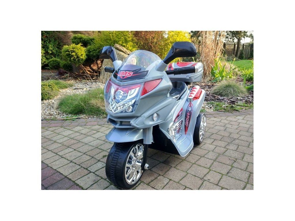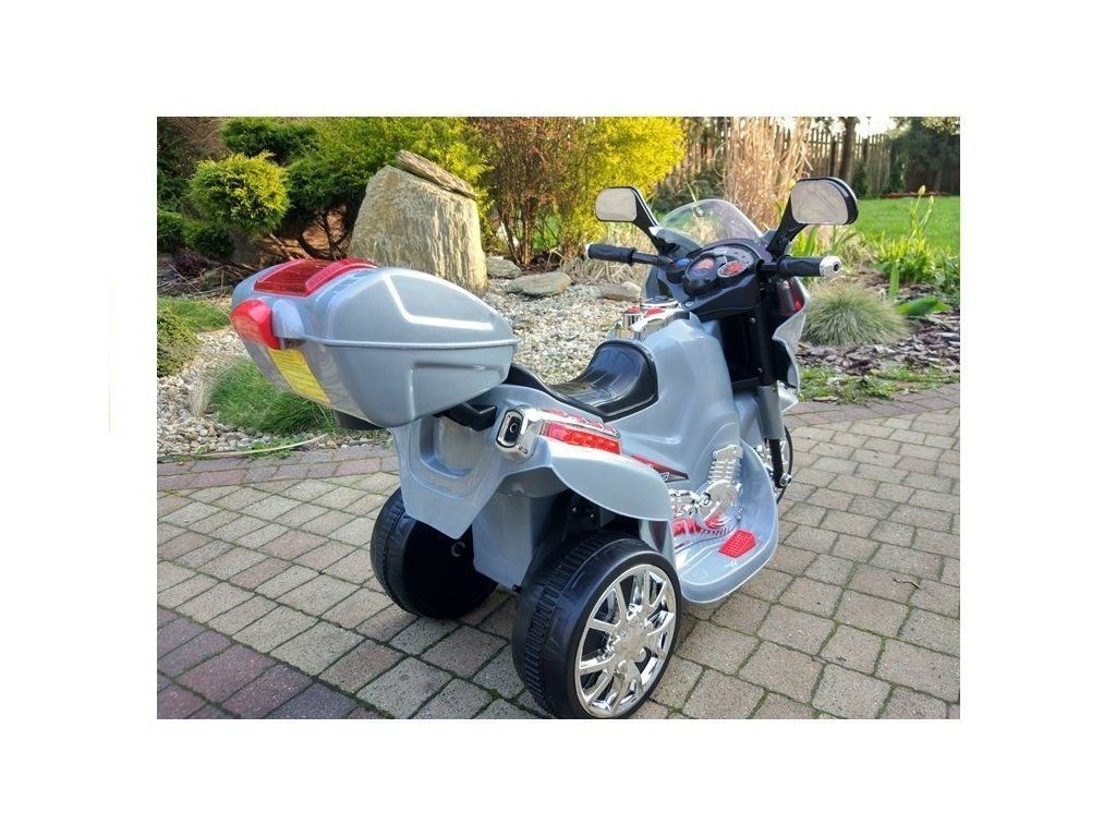 Dětská elektrická motorka stříbrná