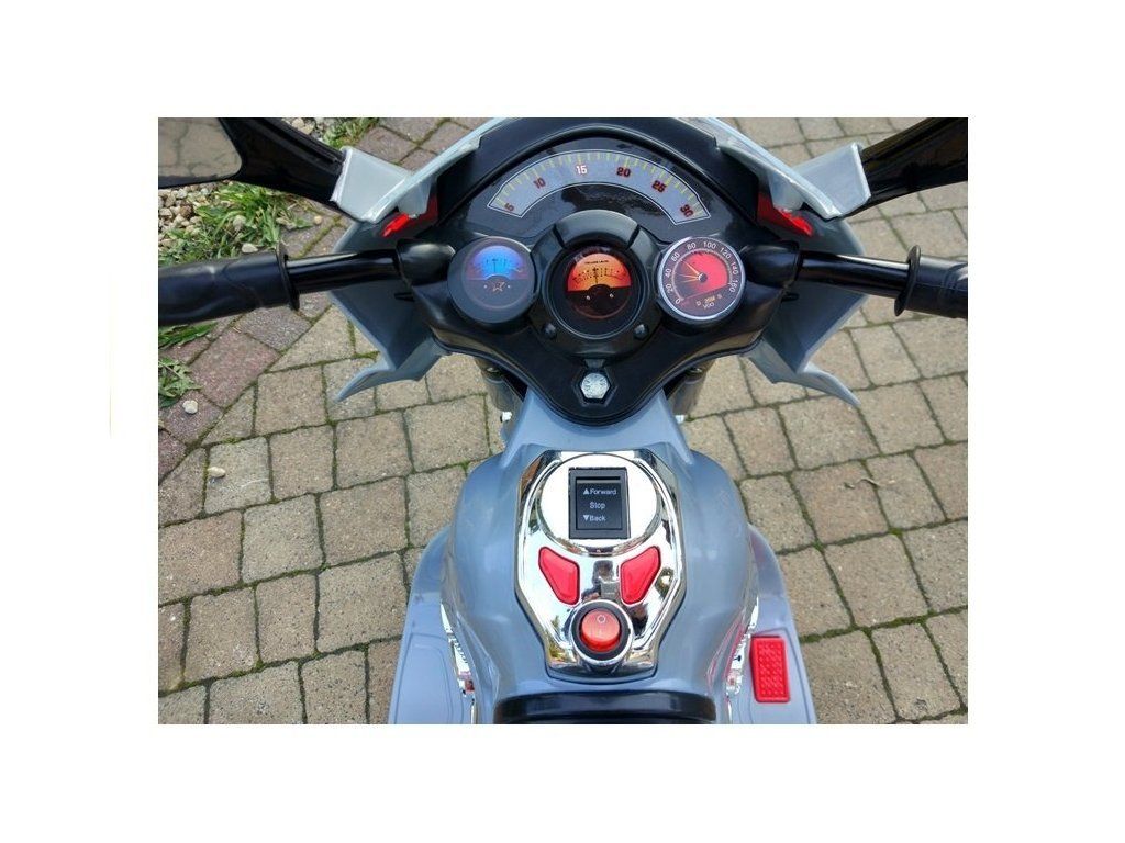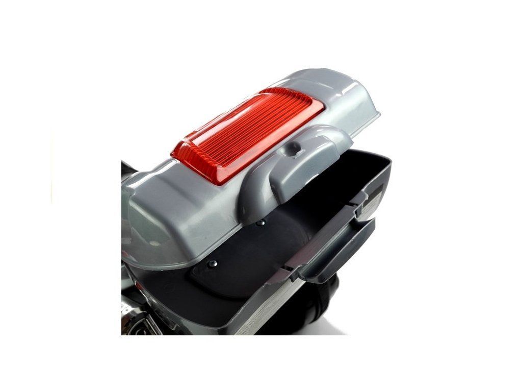 Červená elektrická motorka je vybavená baterií 6V4,5Ah a silným motorem 18 W. Duo těchto komponentů vám umožní dosáhnout rychlosti kolem 4 km / h, což přinese každému dítěti skvělou zábavu. A co víc: tento model má dvě rychlostní stupně - přední a zadní, což výrazně usnadňuje zábavu. Dalšími prvky, které jsou hlavními výhodami této motorky jsou: transparentní kapota, boční zrcátka a LED osvětlení, které zvyšují viditelnost dítěte na silnici. Na zadní straně je otevírací kufr, ve kterém malý řidič může držet své poklady. Nezanedbatelným prvkem je houkačka a hudební tlačítka v oblasti volantu.