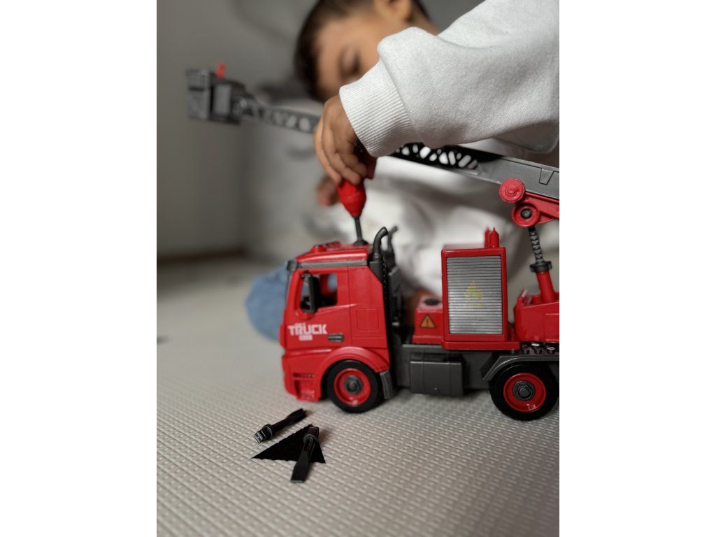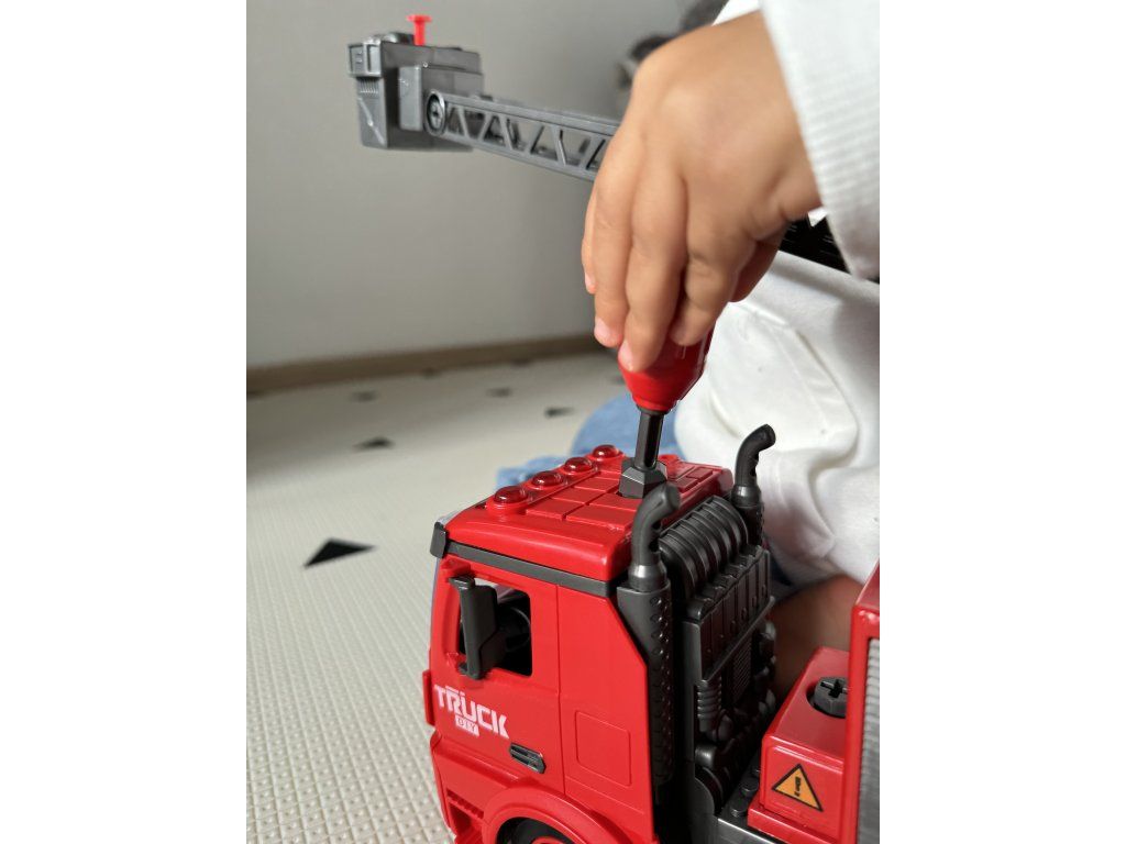 Nella confezione troverai: Tutto il necessario per assemblare un camion dei pompieri e un set di cacciaviti per il montaggio.