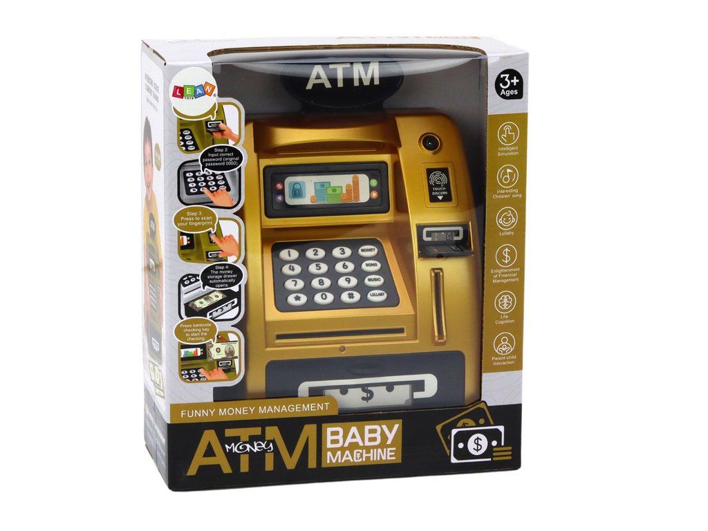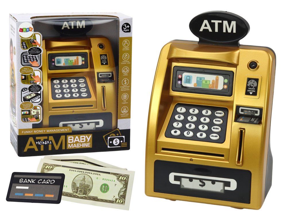 Realizzato con la massima cura in plastica resistente, con un meraviglioso design oro-nero che conferisce un aspetto elegante, ideale per ogni cameretta. La lavorazione dettagliata garantisce un'impressione autentica, aumentando l'attrattiva del bancomat.