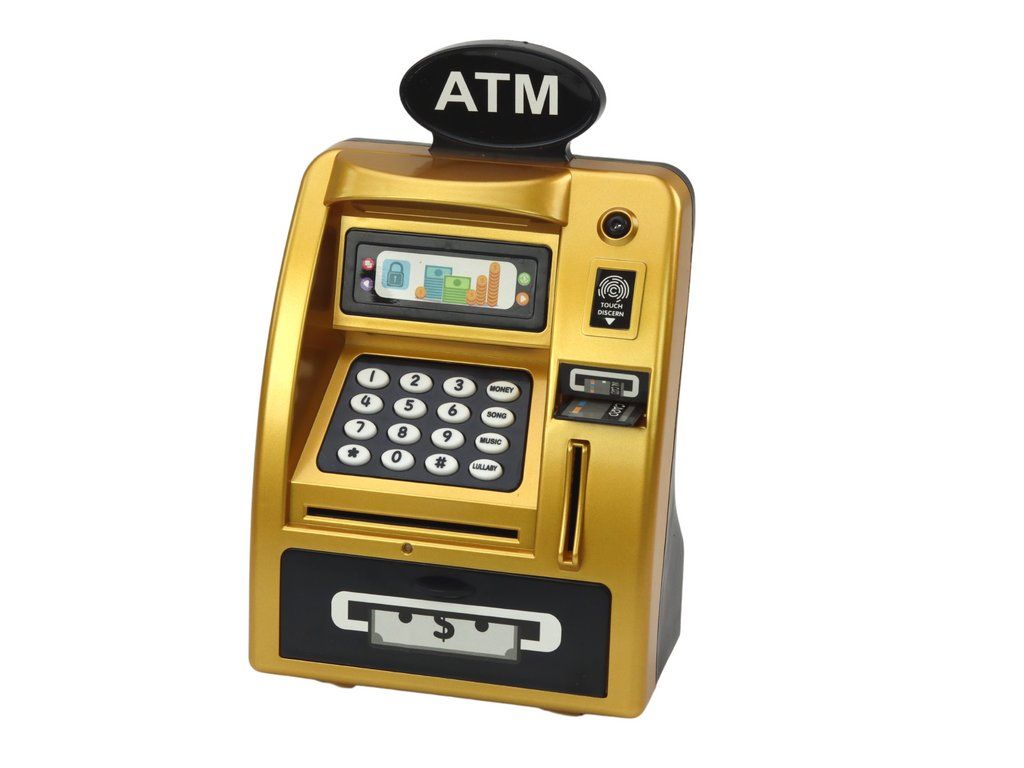 Bancomat per bambini salvadanaio Insegnamento del risparmio oro e nero