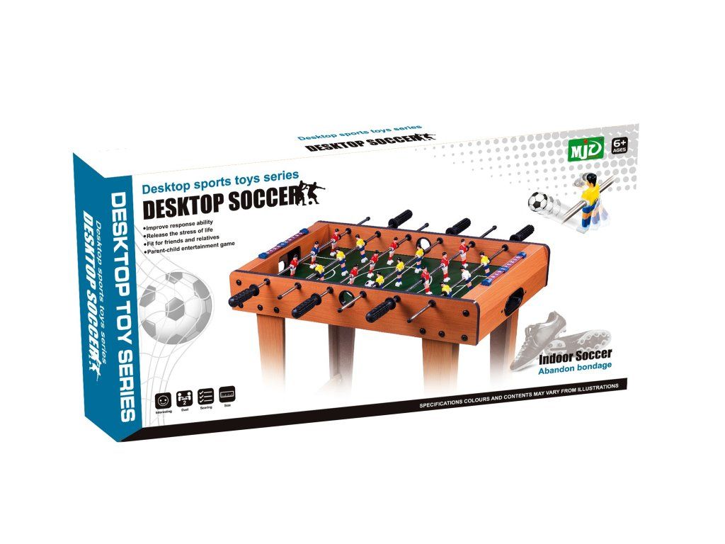 I giocatori sono saldamente fissati a barre rotanti con manopole antiscivolo, il che consente un facile controllo e una precisa gestione della palla. Il calcetto è progettato per promuovere la competitività, riflessi rapidi e divertimento per tutta la famiglia.