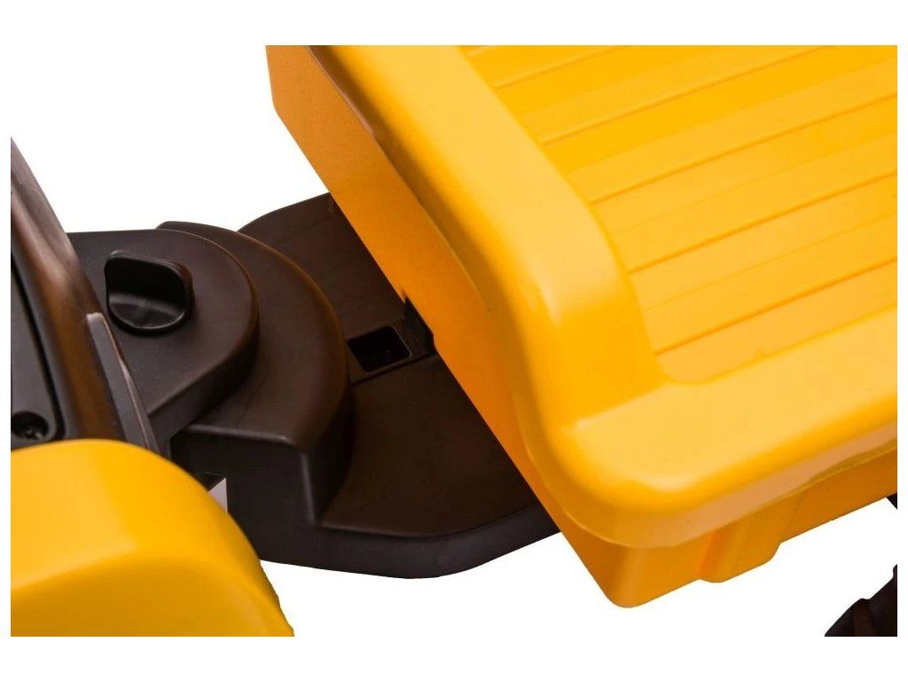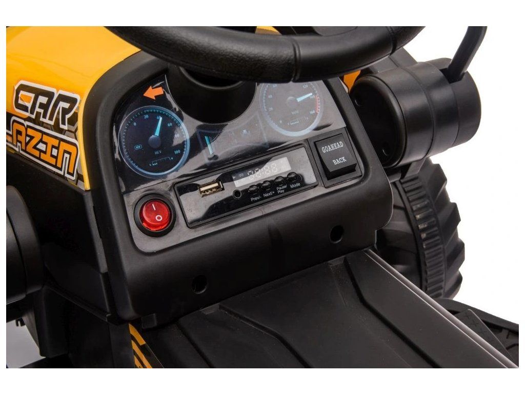 Dětský elektrický traktor se díky své konstrukci a mohutným kolům přizpůsobí nejen zpevněnému terénu. Traktor má dva motory o celkovém výkonu 90W. Ovládání je velice jednoduché, stačí zmáčknout plynový pedál a můžete vyrazit do terénu. Po spuštění nohy z plynového pedálu se traktor automaticky zastaví. Jízdu jistě zpříjemní hudba, kterou si díky MP3 a USB vstupům můžete sami pustit.