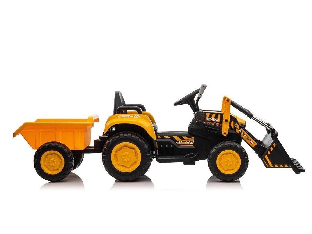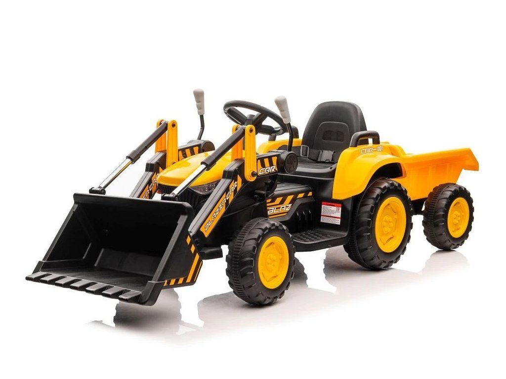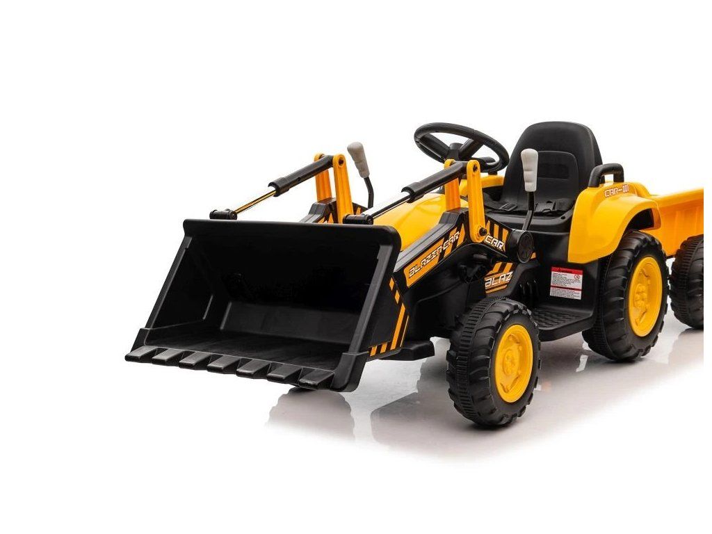 Dětský elektrický traktor s radlicí a přívěsem žlutý - Rozbaleno - L-13564