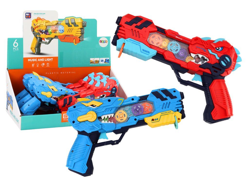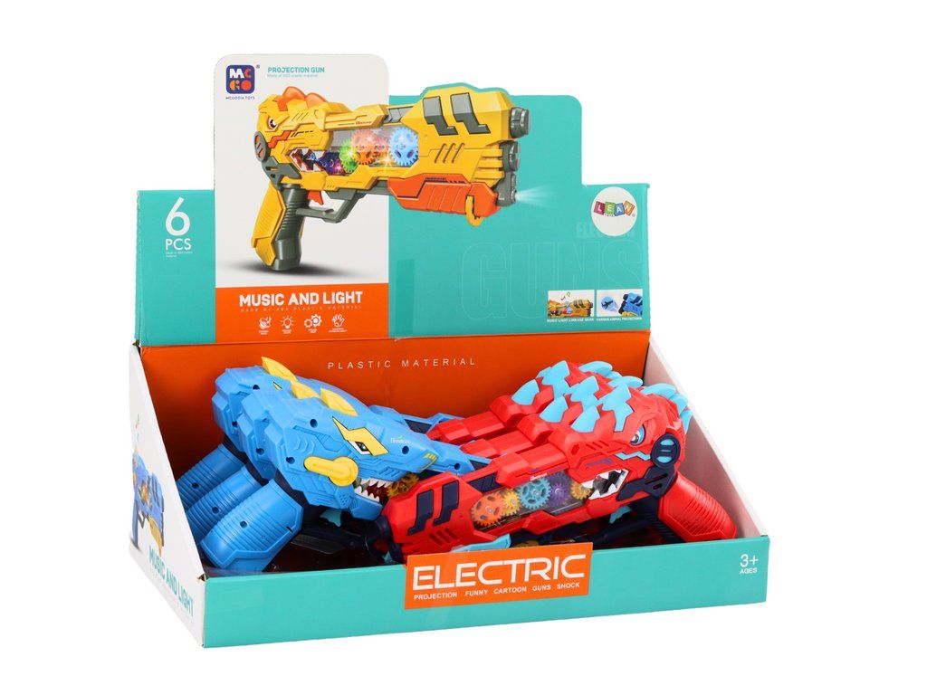 Pistola proiettore Dino con luci e suoni blu e rossa