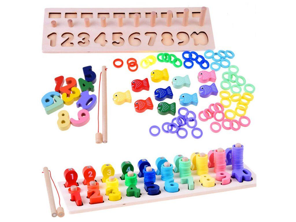 Vzdělávací Dřevěné Puzzle s čísly Magnetický prut a Rybičky