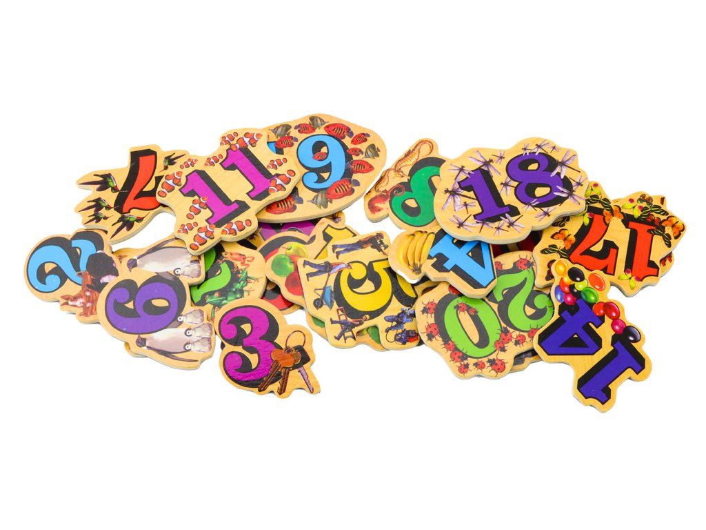 Set di magneti in legno con numeri e immagini 20 pezzi