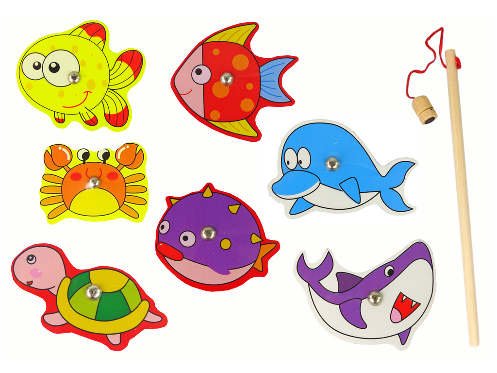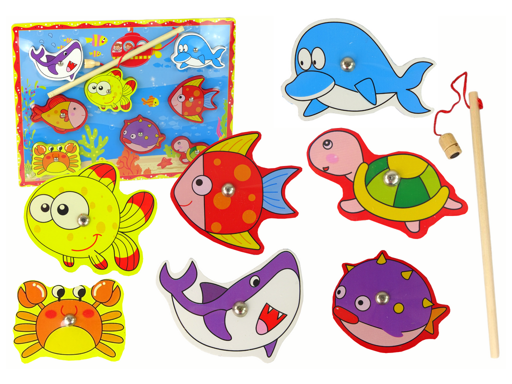Co tyto figurky odlišuje, je přítomnost magnetů na jejich předních stranách. Díky těmto magnetům mohou děti používat dřevěnou rybářskou udici s magnetem zahrnutou v sadě pro chytání těchto roztomilých stvoření. Je to hračka, která cvičí motorické dovednosti, koordinaci pohybů a koncentraci.