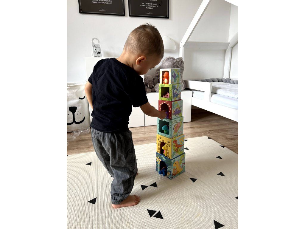 Presentiamo blocchi pieghevoli con dinosauri, ideali per bambini a partire da 12 mesi. Questo giocattolo è progettato per supportare il riconoscimento di forme, colori e la coordinazione occhio-mano. Il set include blocchi colorati con immagini di dinosauri e piccole figurine che i bambini possono impilare, inserire e con cui possono giocare. Realizzato in materiali sicuri e ecologici, questo giocattolo è delicato sulla pelle dei bambini e resistente.