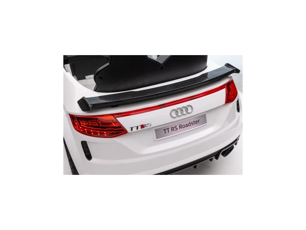 Elektrické autíčko Audi TT RS Roadster má dva motory o výkonu 45W. Autíčko je vybavené baterií s kapacitou 12V 7Ah a má nosnost 30 kg. Sedadlo je potaženo ekologickou kůži a má bezpečnostní pás. Výhodou autíčka jsou funkční přední a zadní LED světla.