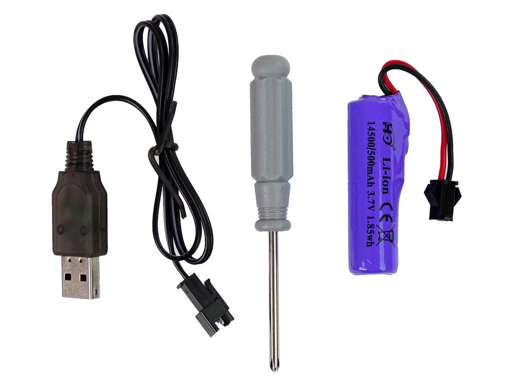 Il giocattolo è destinato a bambini di età superiore ai 3 anni. Il set è certificato CE ed è conforme alla norma EN 71. È confezionato in una scatola con una finestra trasparente, quindi è ideale come regalo. L'alimentazione è garantita da una batteria da 3.7 V 500 mAh inclusa nel set, il telecomando contiene 2 batterie da 1,5V AA, non incluse nel set.