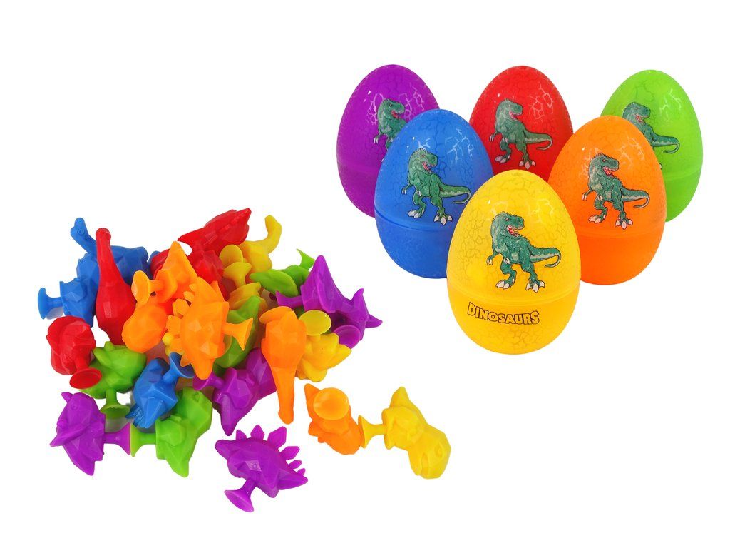 Questo set è realizzato pensando agli amanti dei dinosauri! Il set include sei uova colorate con piccoli figurine di dinosauri nascoste all'interno di ogni uovo. Apri le uova colorate, estrai i piccoli dinosauri dal loro interno e organizza secondo i colori! Puoi anche classificare i dinosauri in base alla loro specie! Grazie alle ventose, queste piccole creature possono essere attaccate a molti posti, rendendo il gioco multidimensionale.