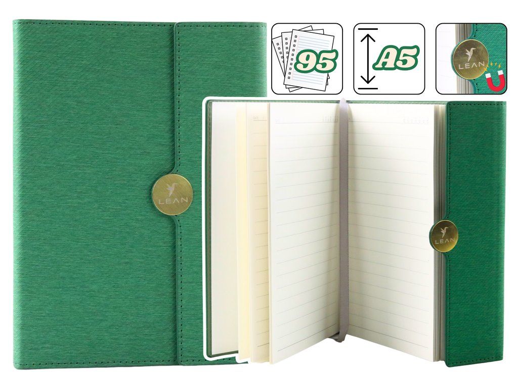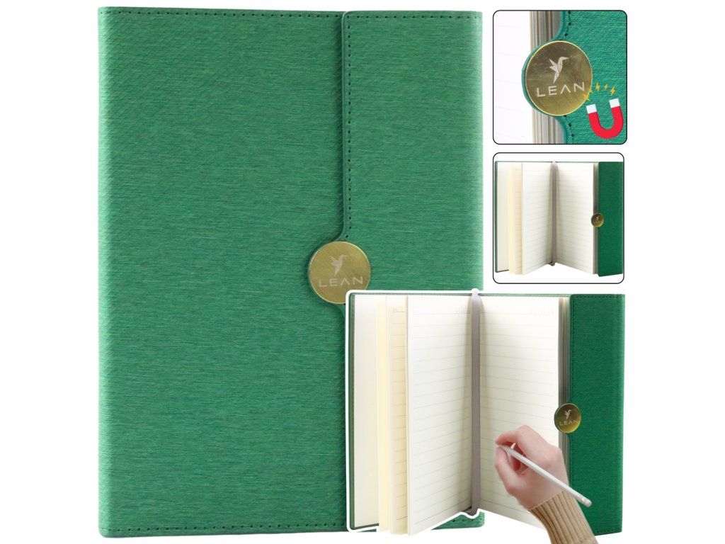 Elegante quaderno formato A5 con chiusura magnetica e copertura marrone unisce stile e funzionalità. La sua robusta chiusura magnetica protegge il contenuto da aperture indesiderate e contaminazioni, mentre la copertura rigida di alta qualità garantisce una lunga durata.
