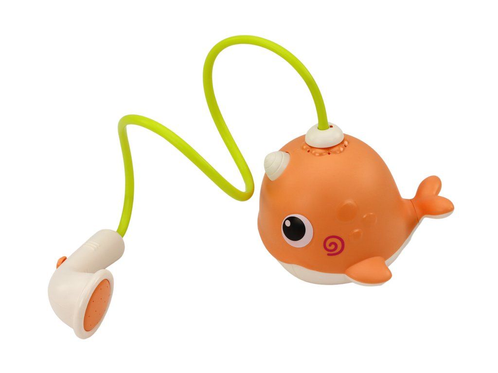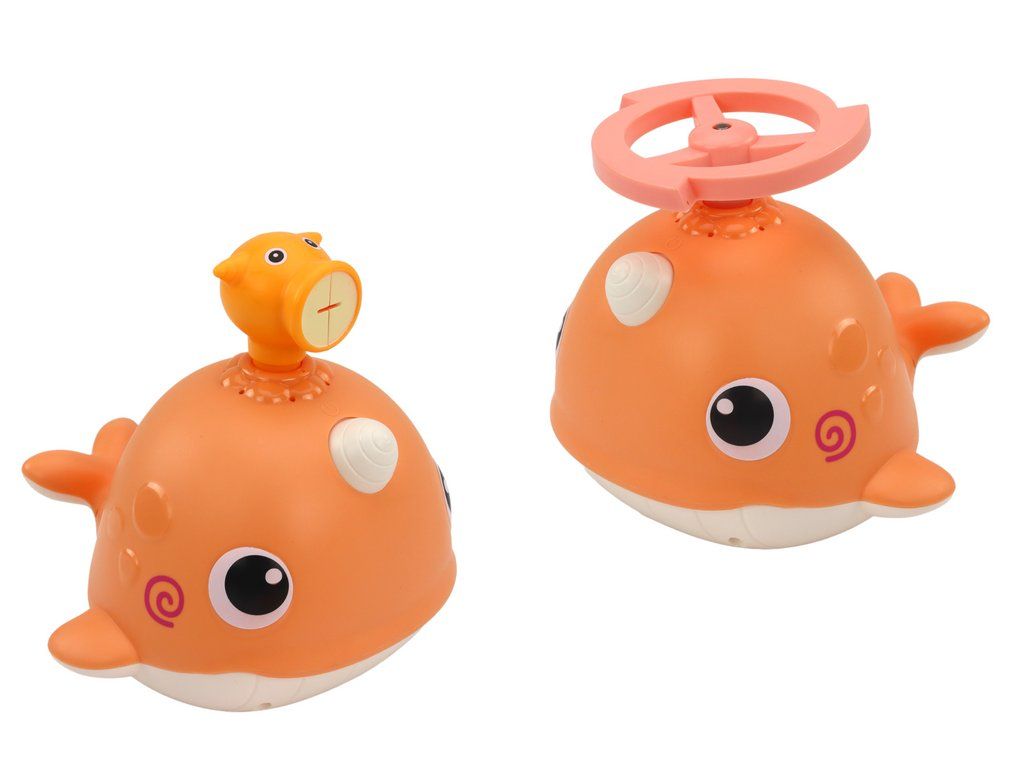 Il giocattolo ha la forma di una simpatica balena, che non solo diverte, ma stimola anche l'immaginazione dei bambini. La sua struttura unica consente l'uso di diversi accessori, aprendo molte possibilità di gioco. Una volta la balena può fungere da doccia, un'altra volta può trasformarsi in una piccola fontana o spruzzare acqua in modo interessante. Inoltre, il getto d'acqua laterale arricchisce l'esperienza e crea effetti visivi spettacolari e coinvolgenti.