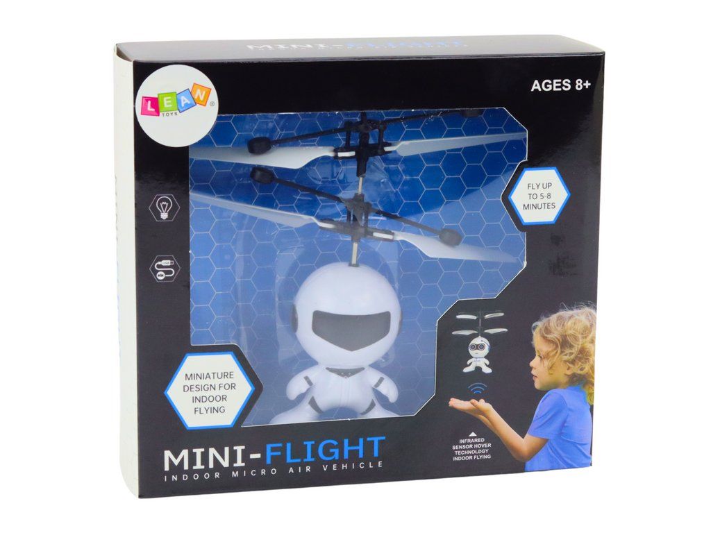 Dron volante astronauta controllato a mano bianco
