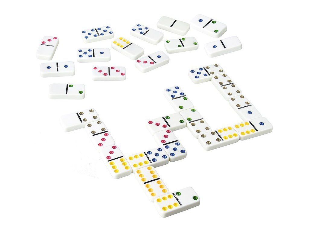 Domino è un gioco noto in cui si utilizzano dei tasselli chiamati pietre. Ognuno dei tasselli è diviso in due quadrati con punti colorati segnati. Il gioco presentato è la versione più popolare, composta da 28 tasselli, che includono tutte le combinazioni di numeri da 0 a 6.